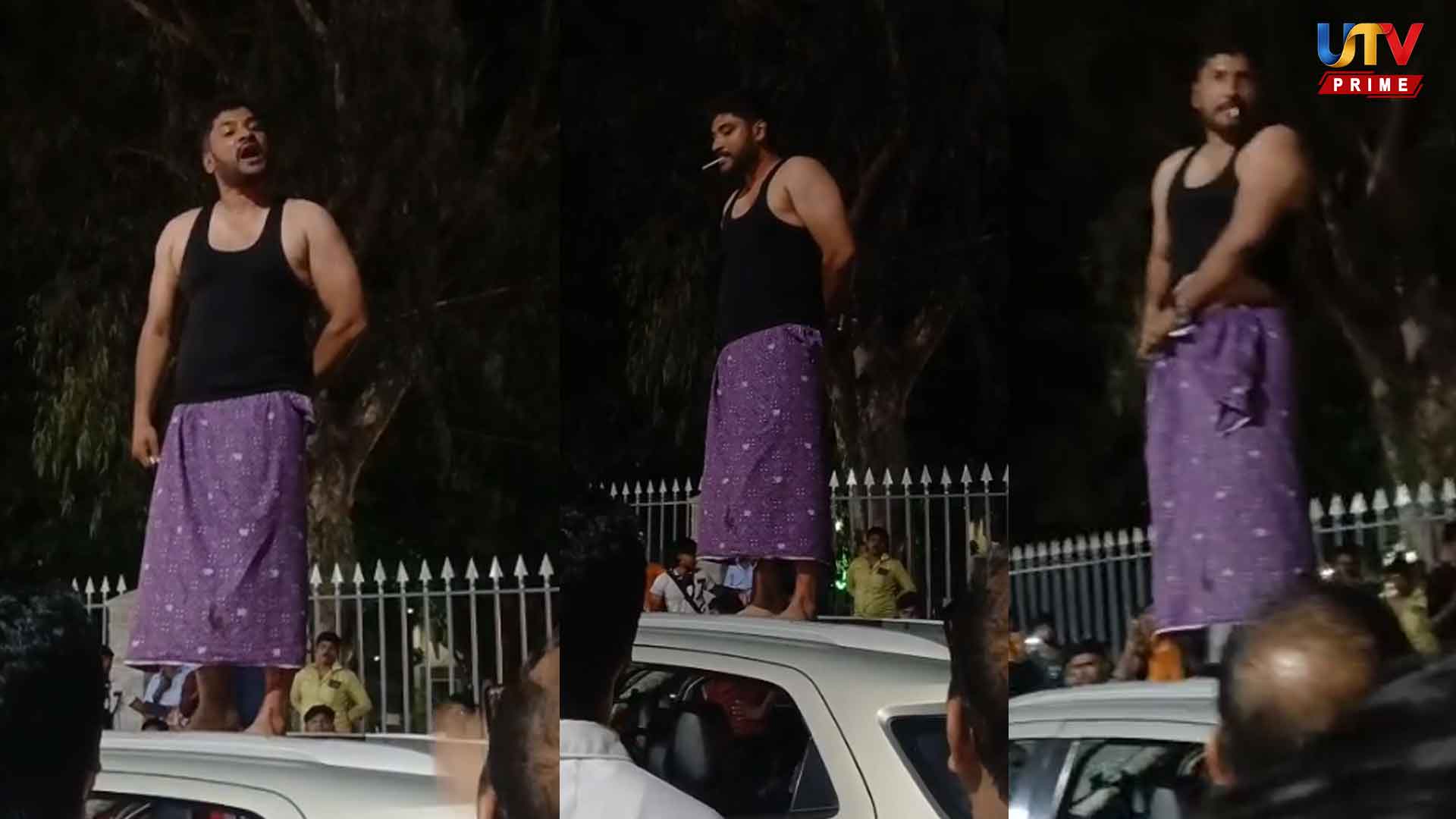 அப்போது அந்த வாலிபர் காரின் மீது ஏறிக்கொண்டு கீழே வாயில் சிகரெட்டை வைத்துக்கொண்டு ரகளையில் ஈடுப்பட்டுள்ளார். இந்நிலையில் தகவல் அறிந்து சம்பவ இடத்திற்கு வந்த போலிசார் அவரை பிடித்து அரசு மருத்துவமனைக்கு அழைத்து சென்றனர். காரையும் பறிமுதல் செய்து பீளமேடு காவல் நிலையம் கொண்டு சென்றனர்.