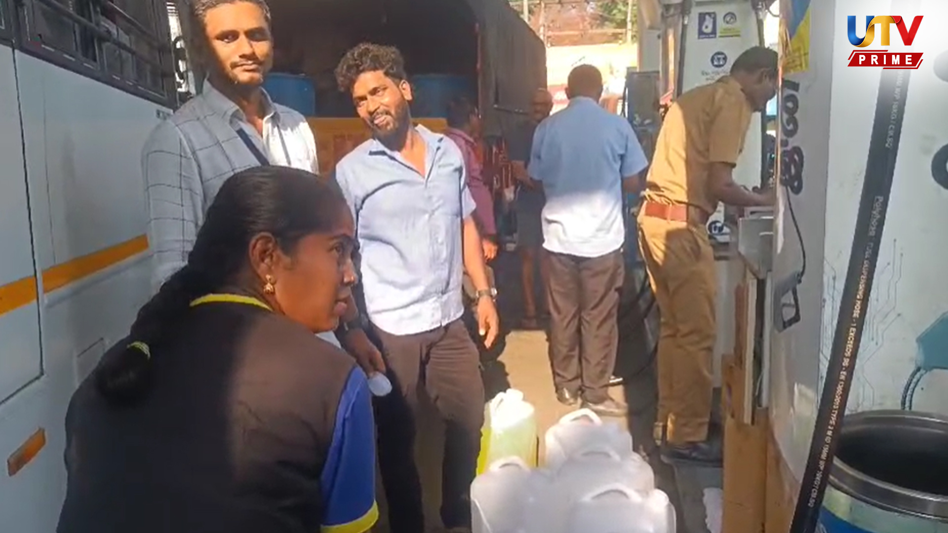 ஸ்தம்பித்த போக்குவரத்து.. சாலையில் நீண்ட வரிசை பேரல் பேரலாக பெட்ரோல் வாங்கும் மக்கள்..!