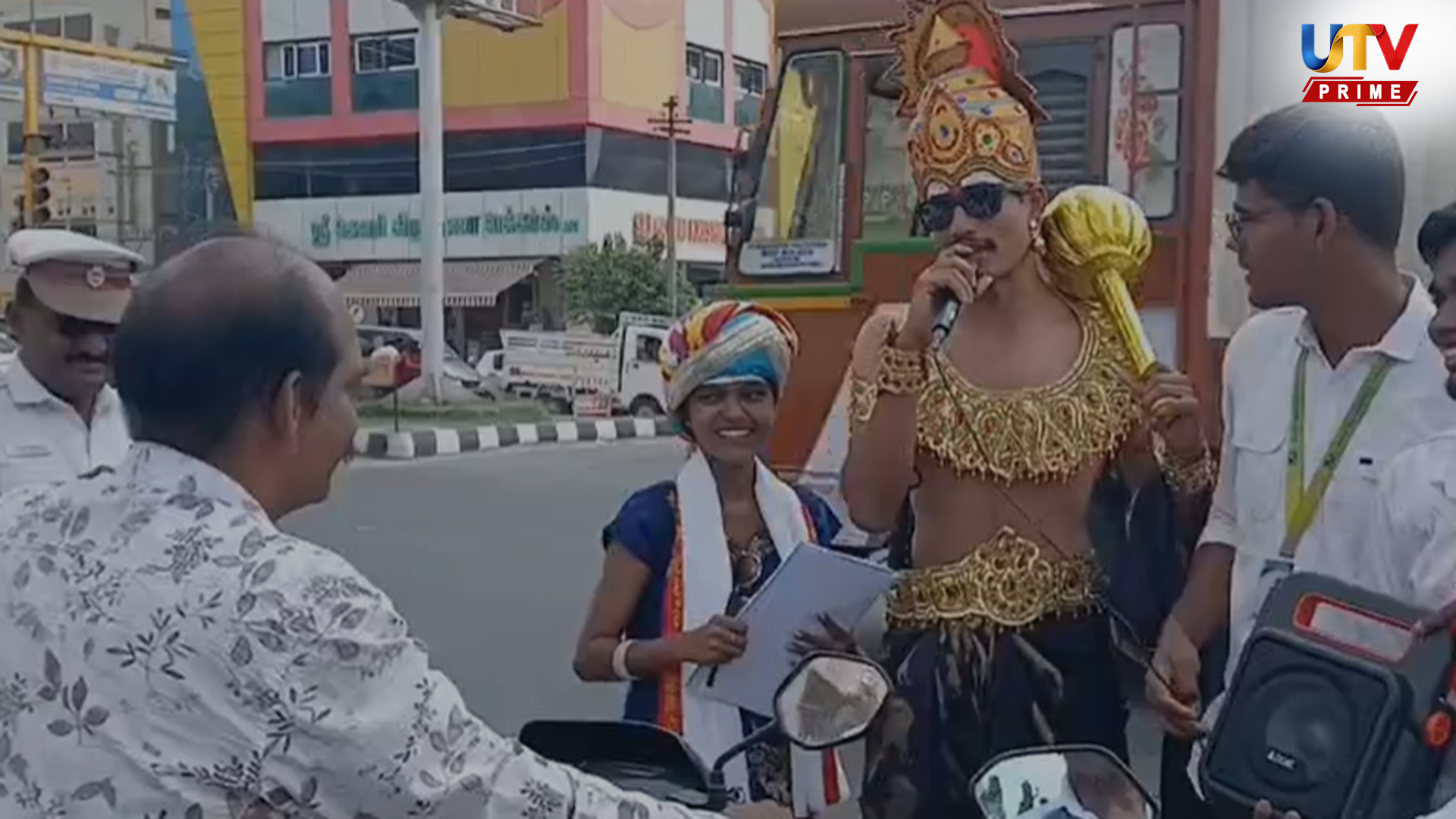 Helmet seat belt awareness Pollachi road safety awareness Pollachi traffic police campaign Road safety students awareness Tamil Nadu traffic rules awareness Yama costume road safety campaign பொள்ளாச்சி சாலை பாதுகாப்பு விழிப்புணர்வு