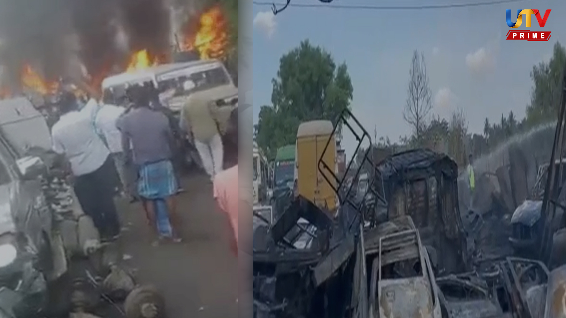 இந்நிலையில், திறந்தவெளியில் வாகனங்கள் நிறுத்தி வைக்கப்பட்டிருந்த பகுதியில் திடீரென தீப்பிடித்து எரிந்தது, வாகனங்களில் இருந்து வெளியேறும் ஆயில், மற்றும் பிளாஸ்டிக், ரப்பர் கழிவுகள் மீது தீ பற்றியதால் தீ மல மல என பரவி ஏராளமான பழைய வாகனங்கள் கருகி சேதம் அடைந்தன.